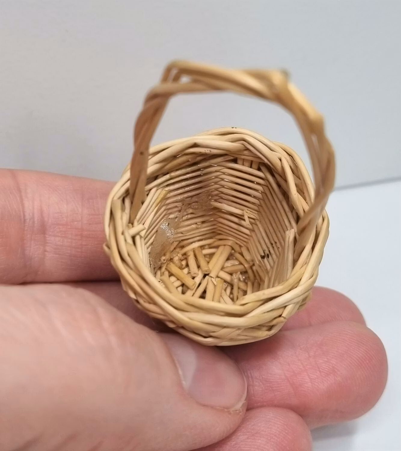 1 st liten miniatyrkorg, minikorg. Miniatyrer till dekoration, ha i dockskåpet, tittskåp med mera.