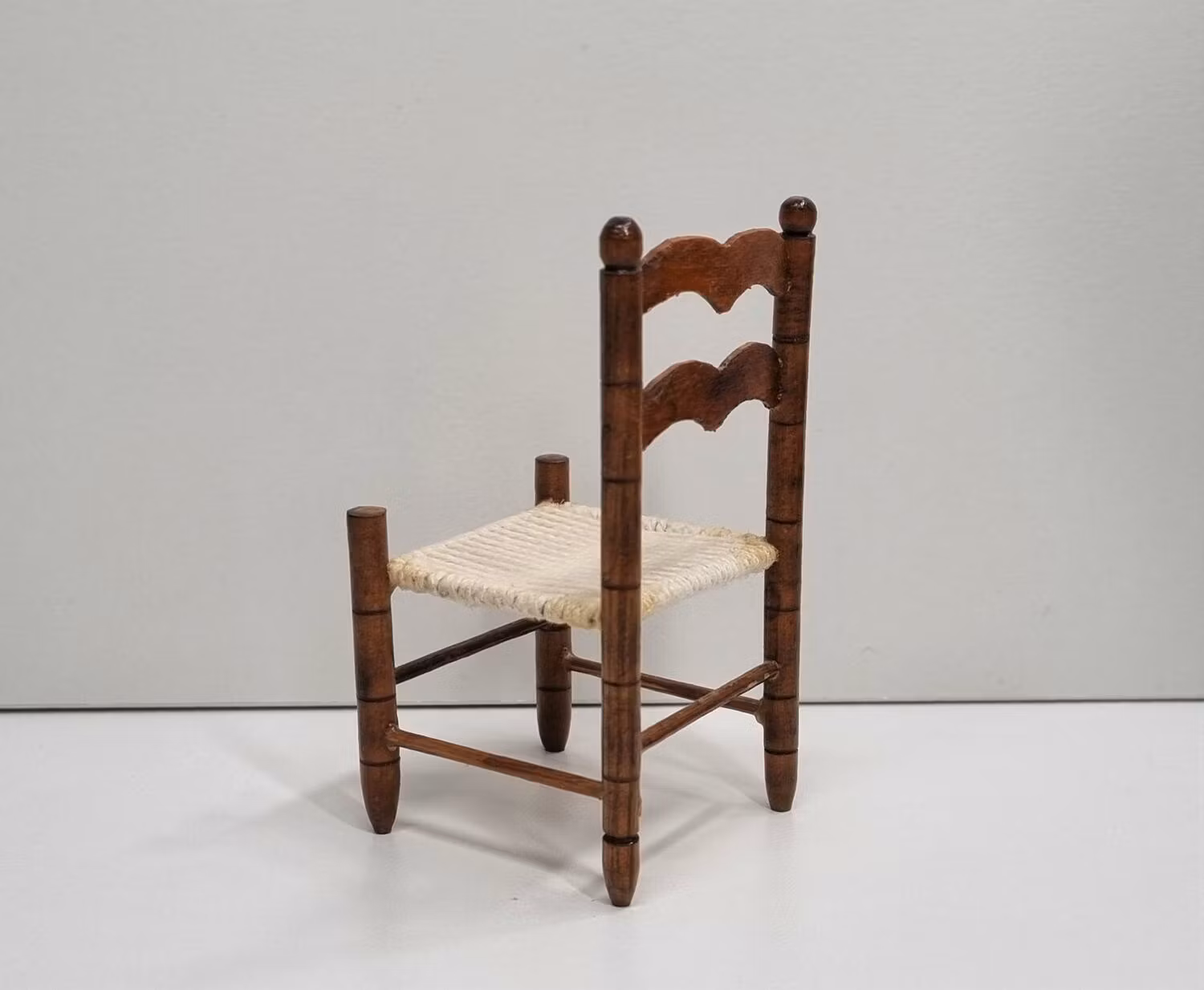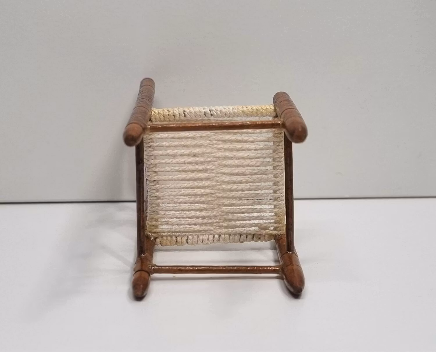 Dockskåpsmöbel i form av en stol. Ser ut att vara aningen gulblekt på det vita tyget. Granska bilderna noggrant innan bud/köp då denna vara är begagnad, vilket innebär att det kan förekomma bruksslitage och smuts. Se nedanför mått samt de sista bilderna för att avgöra skalan på varan.