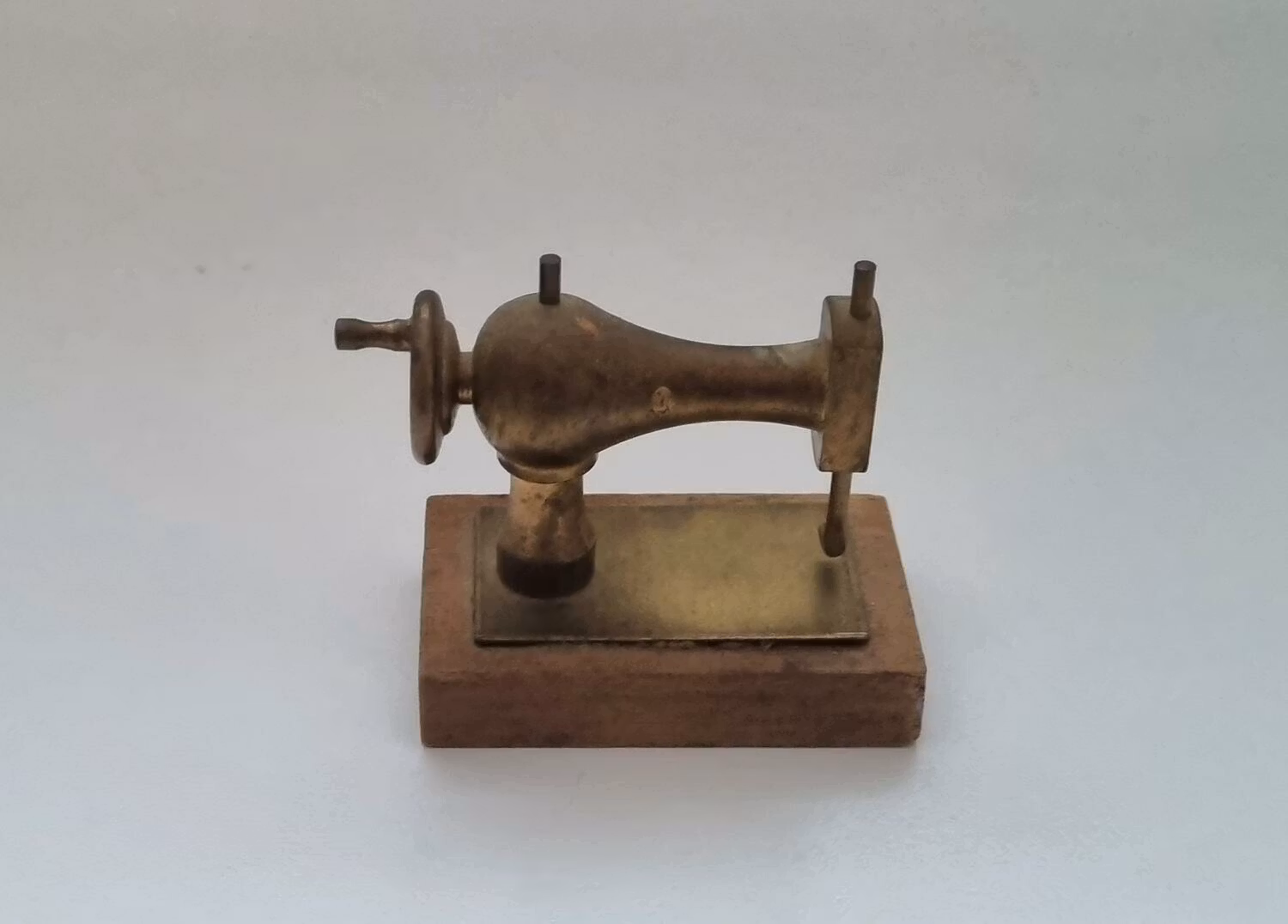 Söt liten miniatyr, någon form av maskin, i vad jag tror är mässing (det går ej att snurra på veven). Passar till exempelvis ditt dockhus, tittskåp, till hobbyp
