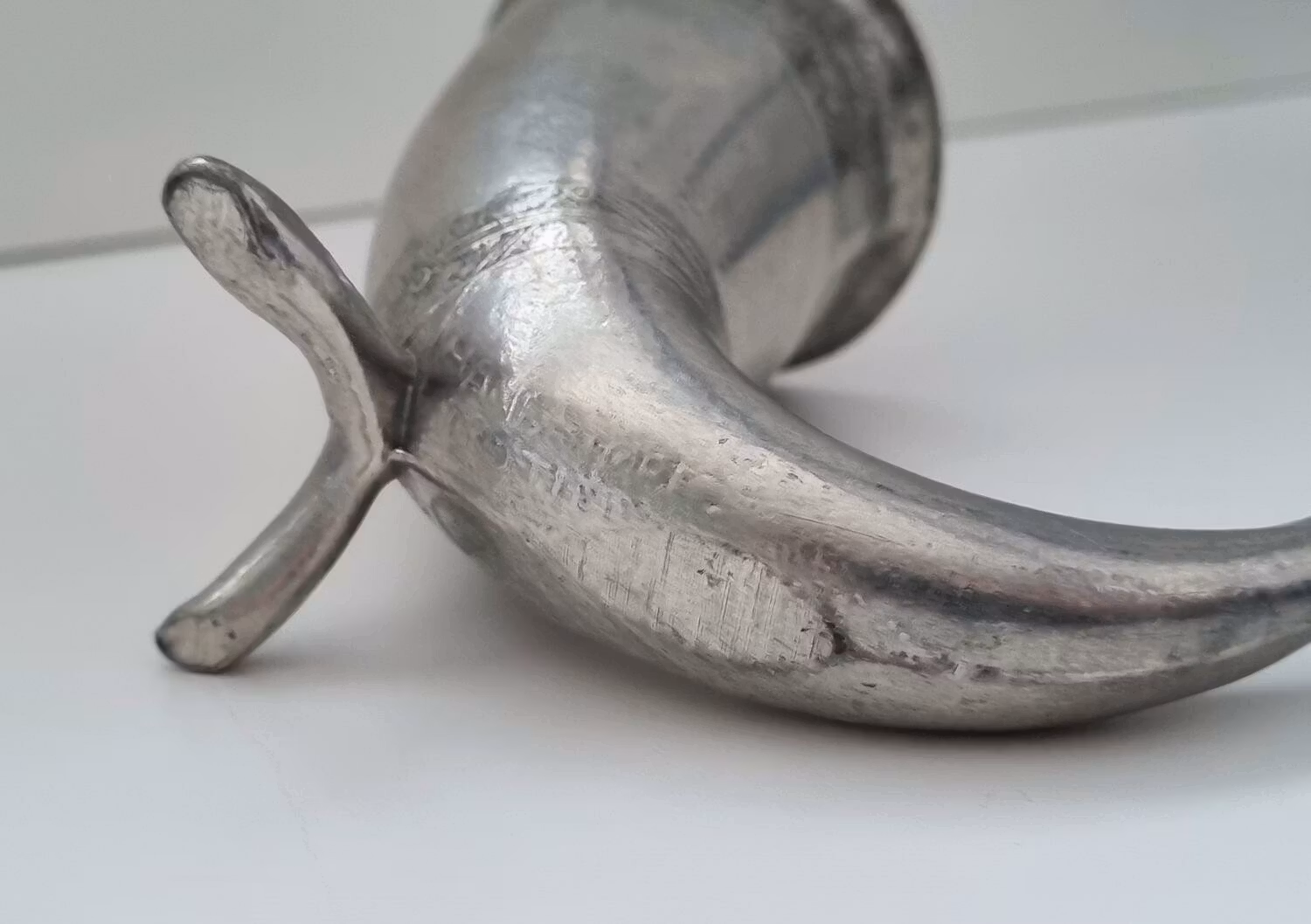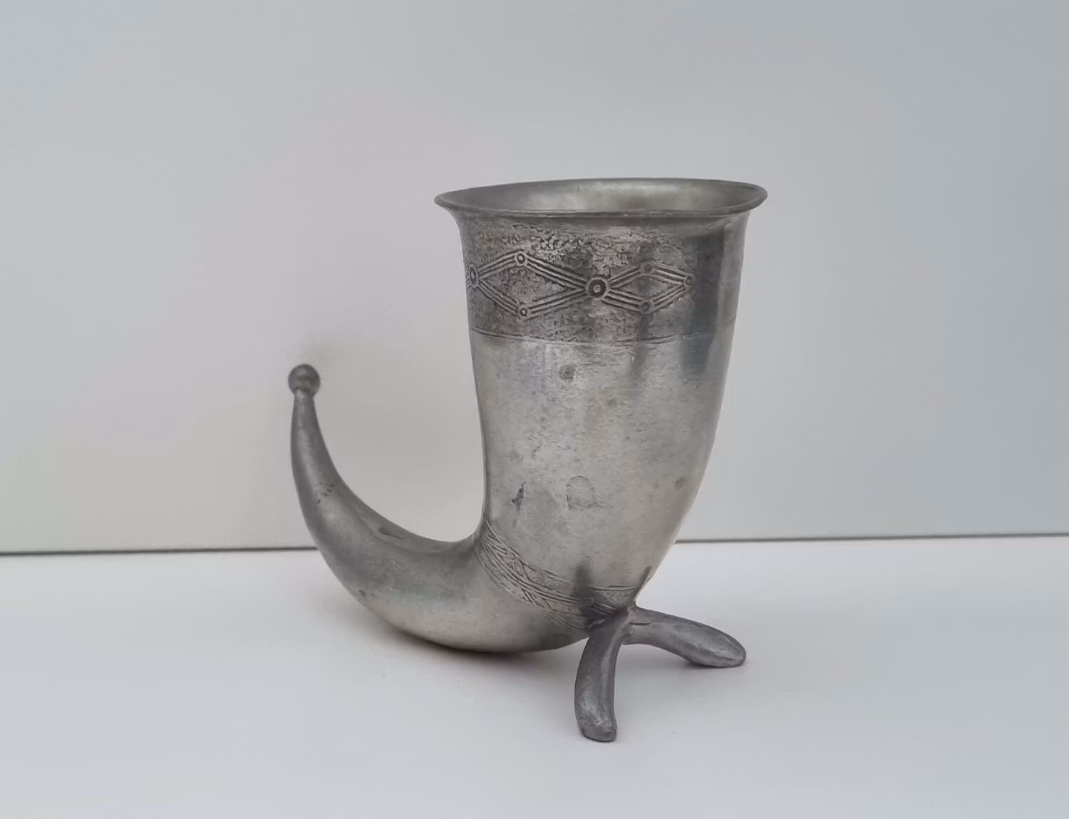 1 st Handstöpt Vikinga horn. Fungerar som ljushållare såväl som snapsglas. TPB Norge. Är nerfilad (medvetet?) för att kunna stå rakt (se bild 4). Granska bilderna noggrant innan bud/köp.