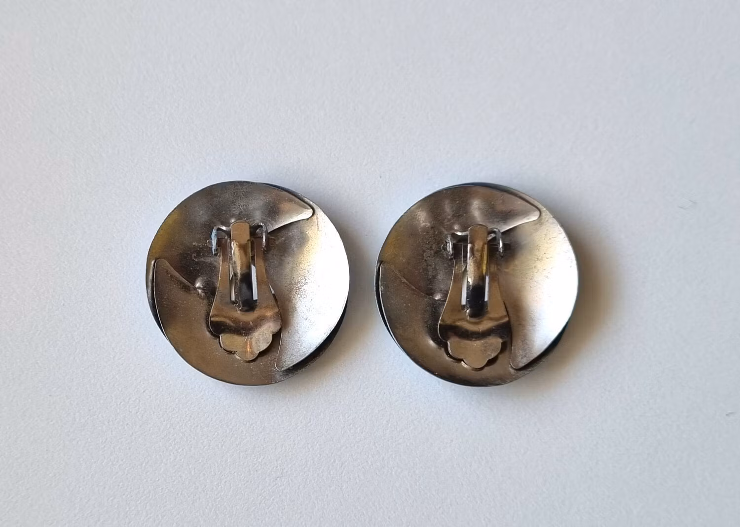 Blå clips, örhängesclips. Tänk på att denna vara är begagnad och att det förekommer bruksslitage samt smuts på dom. Granska bilderna noggrant innan köp.