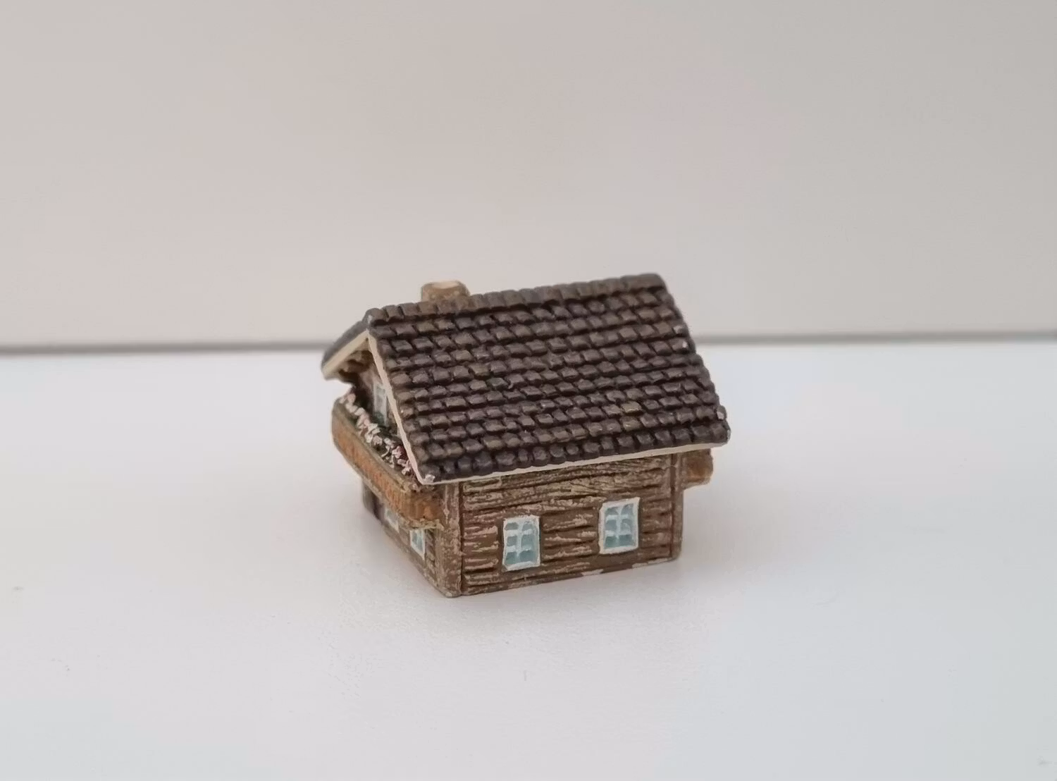 Miniatyrhus. Finns text undertill. Tänk på att denna vara är begagnad vilket innebär att det kan förekomma bruksslitage och smuts så granska bilderna innan köp. Miniatyr att dekorera dockskåpet med, ha i tittskåp, miniatyrträdgård, dekoration, hobbyprojekt med mera. Finns en uppsjö av fler miniatyrhus så klicka dig in i butiken för att se fler.