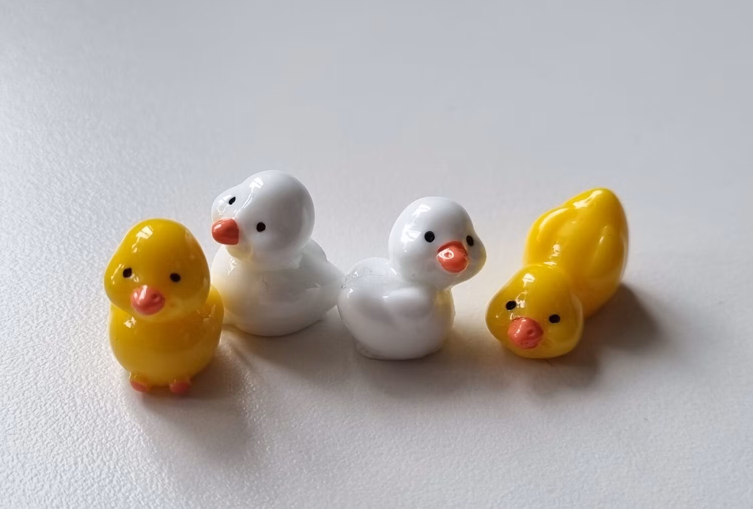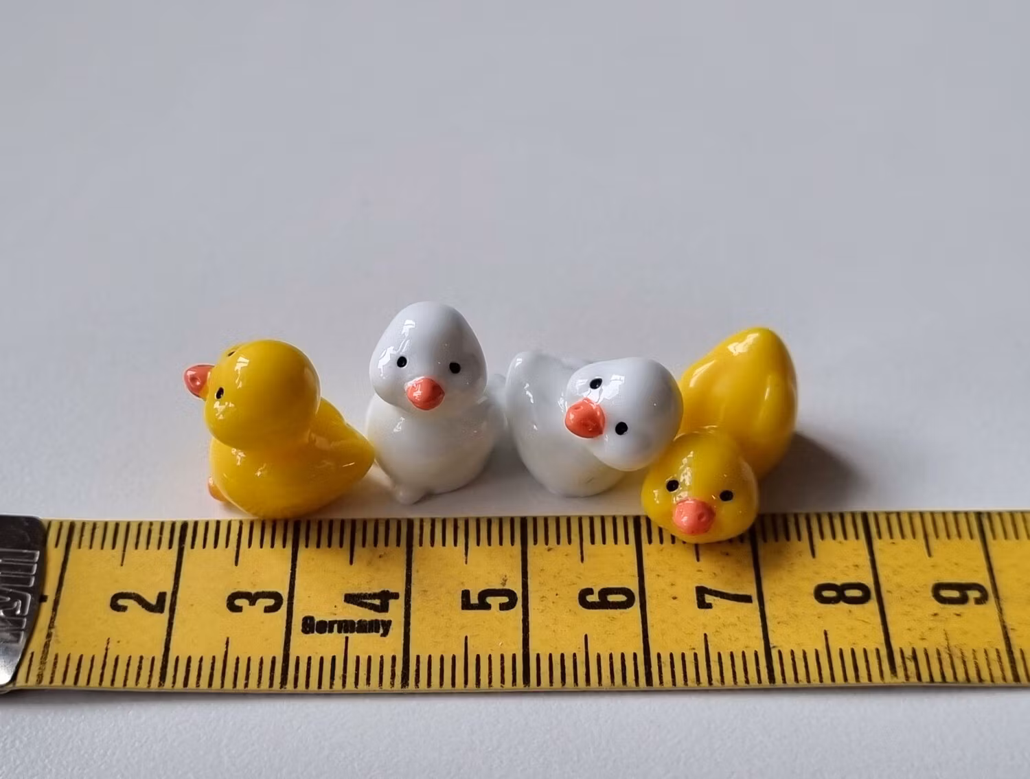 4 st söta små ankor / ankungar - miniatyrer / figuriner som är fina till dekoration, ha i dockskåpet, tittskåp med mera.