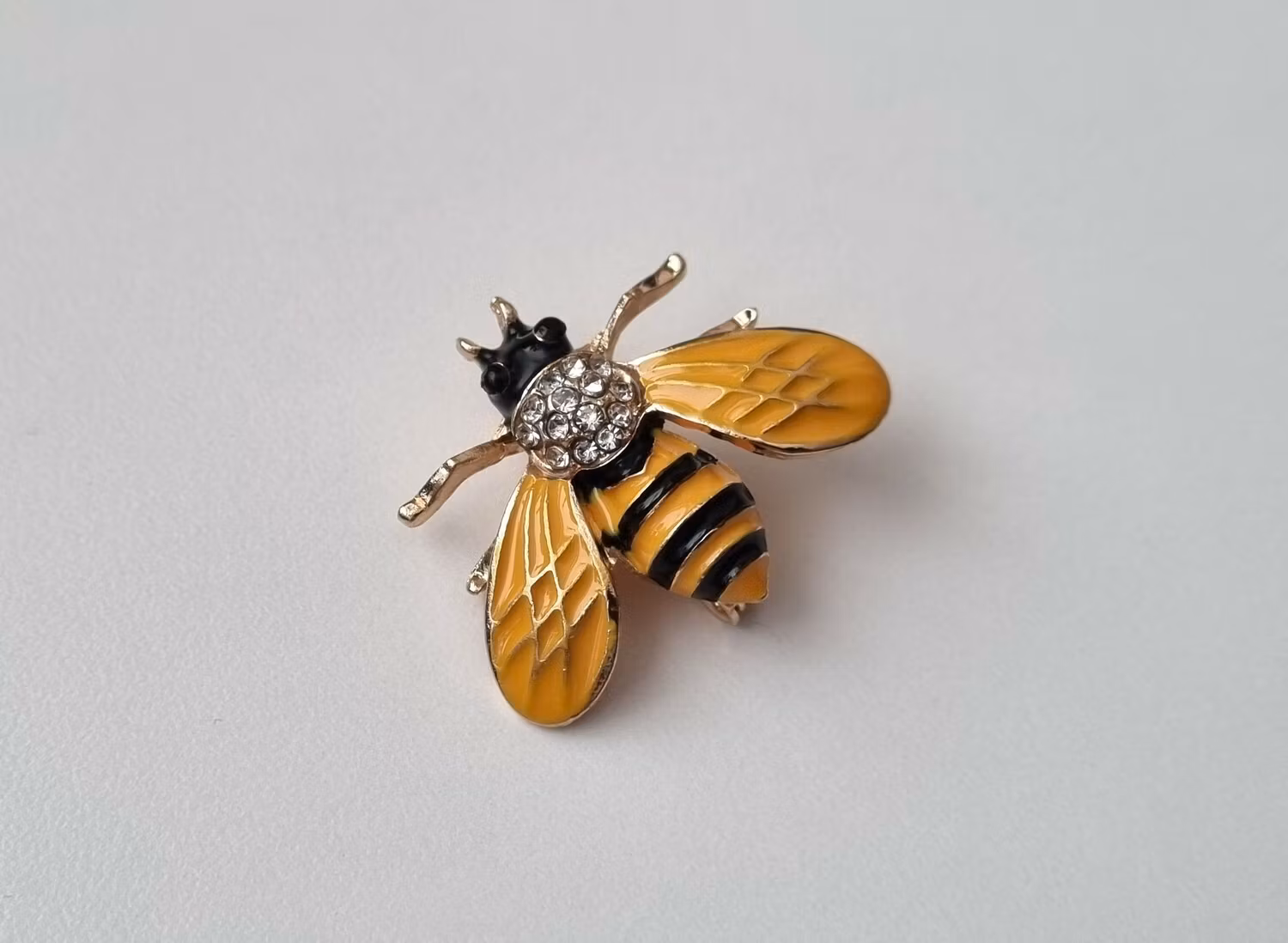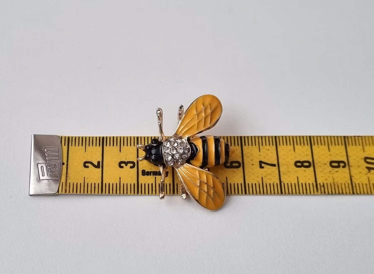 Underbart söt och detaljrik brosch / hänge som föreställer en geting / insekt med vita strasspärlor på ryggen.