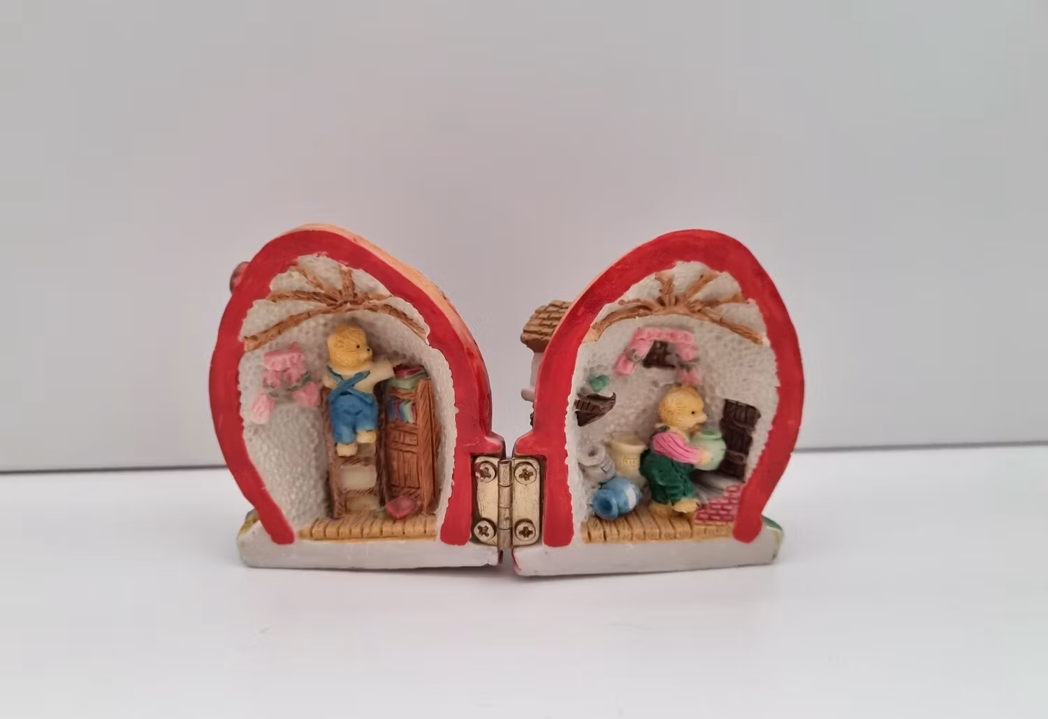 Öppningsbart miniatyrhus. Tänk på att denna vara är begagnad vilket innebär att det förekommer bruksslitage och smuts så granska bilderna innan köp.